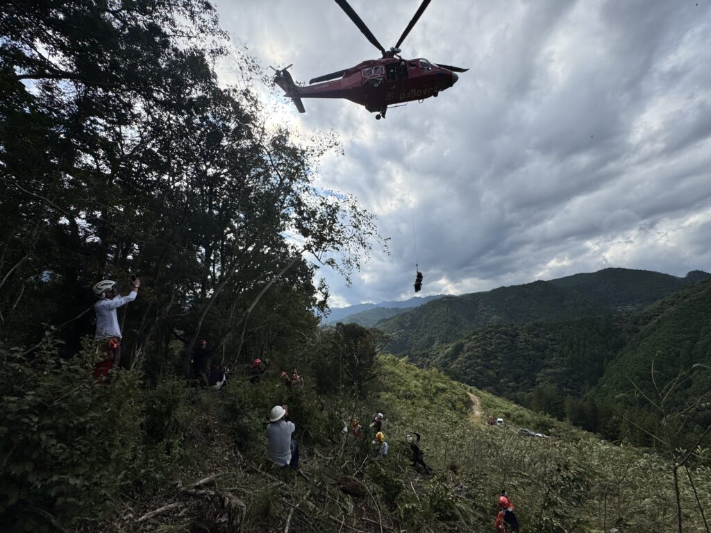 林業での事故現場は車ではアクセスできないことも多く、ヘリを使用して救助活動を行うことがあります。高知県では2機の消防防災ヘリを所有しており、高知龍馬空港に待機しています。嶺北地域まで約15分で到着することができ、通報から早くて30分ほどで現場に到着できるそうです。
