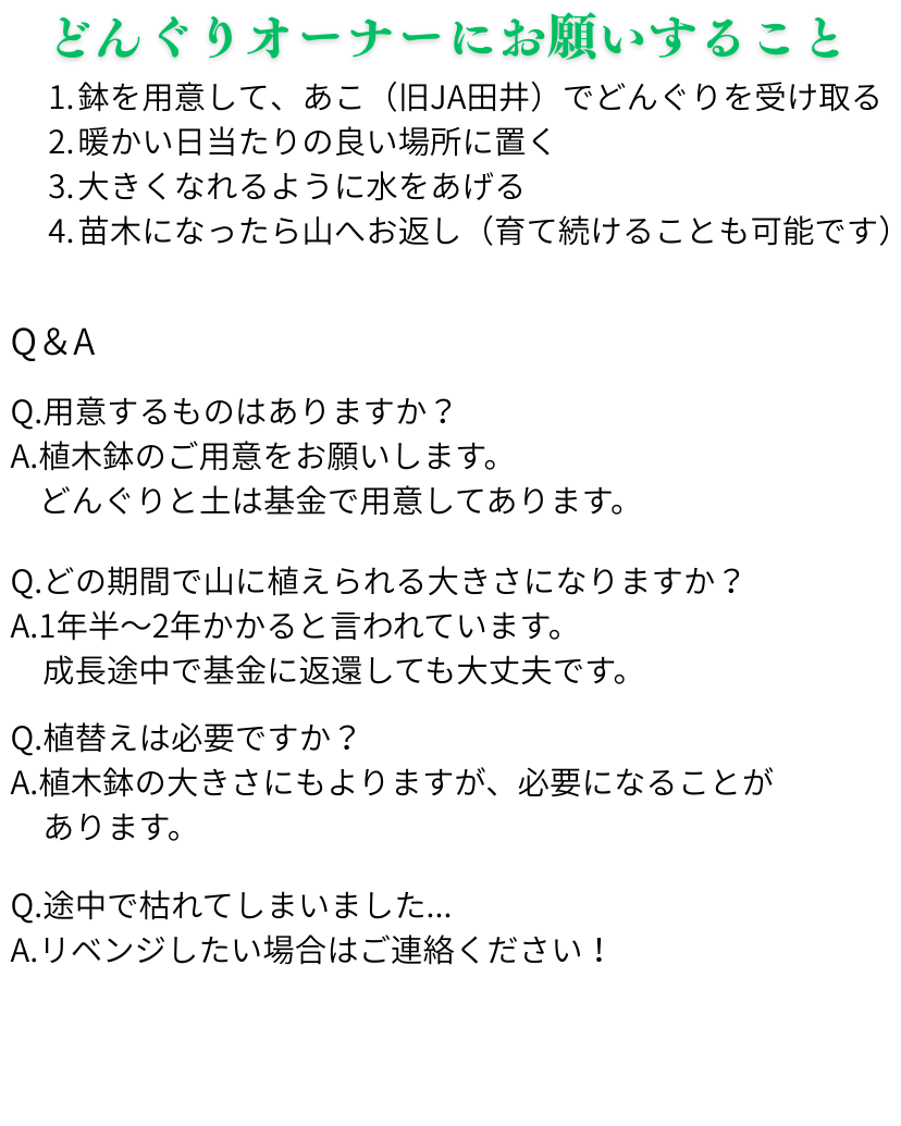 どんぐりオーナーを募集します!