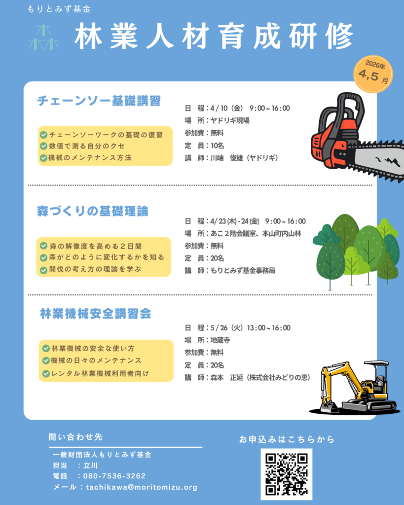 令和8年度4月に開催する林業人材育成研修のご案内です。