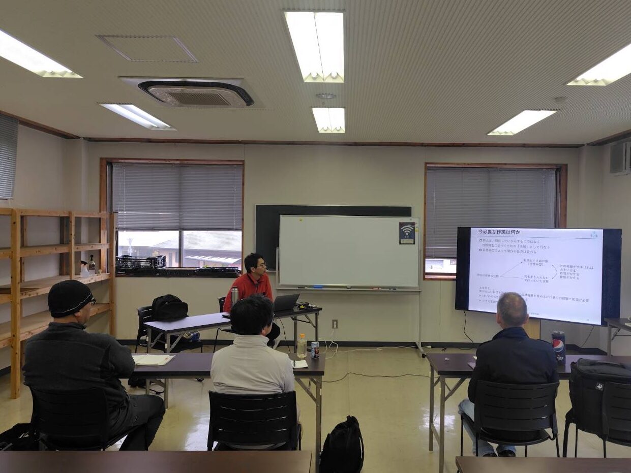 2日間のうちの1日目は室内での座学になります。座学では以下のような項目で話をしました。